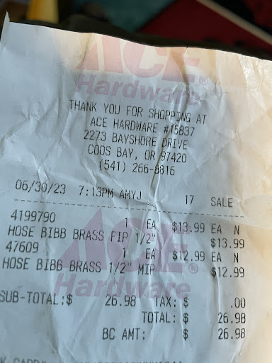 Overall, I give this store a score of F-. The Coos Bay Ace is NOT the...