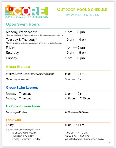 we love the CORE of course,who wouldn't great water park and all however one thing we wish they considered.we have been able to rent out other rental spaces from other recreational centers that allow us to use the room up to 10PM. How they work is that they have a staff that works up to 5PM and another one that works from 5P to 10P especially when they have events and also for access to the facility for sports activities for teens and adults.This would also help a lot of especially teens and grown ups who would like to use the recreation center for sports activities after 6PM during the week and weekend.I wish the CORE would implement something like this so we/our kiddos would adults. benefit from this amazing facility and space for our children's events ;birthdays,sports etc and hence we do not have to go far to use other cities facilities. ● Another thing we hope this amazing rec center and Dallas as a whole did was to keep the outdoor pools open after labor day/September until the temperatures drop or hold pool services when the weather is not conducive.it's still so...
