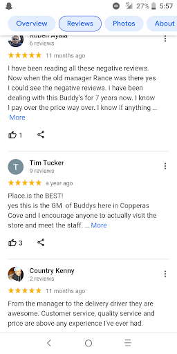 Read moreNever buying anything from this place again my wife bought a PS4 for our son in payments for a total of $800 after she fished paying it they charged her an interest fee for no reason and not once missed a payment. Another time my mother-in-law bought a stream box from buddies a few weeks later it had some defects so she took it back and got a replacement for a new one so then buddies took it upon themselves to add the entire price an fees that applied to my wife's account even though it was not her purchase an even though my mother in law had paid for the stream box cash. They not once informed my girlfriend that she was going to be making payments for the stream box on top of her bedroom purchase for her to let them know that was not part of her deal. All she signed up for the second time was for a bedroom purchase not for a stream box but if they accidentally mixed up the names or last names on the account an honest mistake would have been acceptable but they never even made the attempt to fix it for us. We were even planning on buying a new living room set for my our place now I won't even recommend...