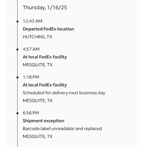Read moreUPDATE: I placed an order in the early AM on Jan 10th, it shipped 3 days later. From that point, it has been in package purgatory. There was apparently some issue with the barcode. Today it finally went out for delivery and was delayed again due to “operational reasons” (there is no snow or weather preventing delivery).