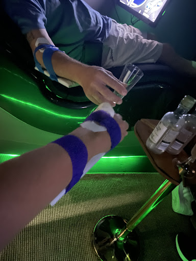 We both experienced IV Therapy and a hydro massage, and the combination was unbelievable! The IV Therapy left us feeling recharged, hydrated, and energized, while the hydro massage melted away all stress and tension. Doing both treatments at the same time was an absolute game-changerâpure relaxation and rejuvenation! The glass of wine, was the cherry on top!
