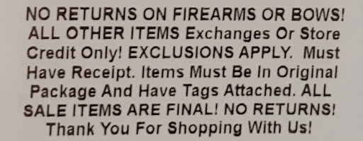 Read moreRead the return policy, it's ridiculous. I understand just returning the gun for no reason but when you have a problem with their product they should give a full refund (they only give 60% if you open the package and find it has issues) or equivalent in-store credit. You buy a working product, not a lottery ticket. Note this is only for new guns and not used. For optics, they don't even allow returns. I don't know any other stores other than something like sex shops that have this strict of a...