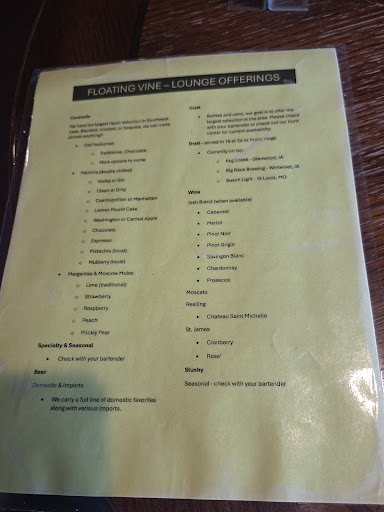OMG where to start. My wife heard from someone at work that the floating vine is a great place to go for some drinks and food so she wanted to check it out for her birthday. It is definitely not a place to visit. First of all they had no one running the front of house and later by the way the food came out there was no one running the back as well. When we walked in the door there was no greeting and we sat ourselves down which is fine but after 20 minutes or so of no server I got up and tracked some one down to take our order. We placed the order and the food did come out decent but not what was on the menu it was like it was thrown into left over containers. The menu read a large portion but that is not even close to what we got. The worst came when we wanted to get out of there because we were disappointed and just wanted to leave no one stopped at our table for the check so I went to the bar to pay and they couldnt find the ticket and when they finally did find it and I paid the it was the wrong bill and I paid for some one elses meal and drinks at a cost twice what my bill would have been. The person taking my payment left my card on the counter and i asked to have my card back he tried to hand me a stack of other peoples cards instead of mine. They were so disorganized that I could have walked out with other peoples credit cards heck I could have left without even paying and they wouldnt even know anything. Final thought, the guy that took my payment was the owner/ manager and he was drinking while working. That alone is a major issue. It is like the place is being ran by fraternity brothers out to just party. With all that happened I would even bet that there will be some food safety issues in the kitchen as well as there bad service up front. I would give them 6 months to a year before they have to close up the...
