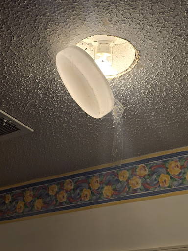 Tuesday we woke up to water all over the dining room area due to the window leaking. The harder it rained, the more the water dripped inside. Please refer to the before section where we had to keep our food in bags and away from the pantry, as this caused the boxes and bags to get wet as well as we had to find towels to mop and keep the area dry. Someone came up and put a band aid fix and caulked the seam of the window. This helped for maybe 3 hours, and then the water started coming through the seems of the other window. And then the ceiling starting to fall and started leaking as well.
