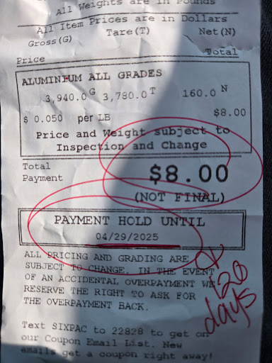 Ā Ā Ā Read moreThey will steal all of your well deserved cash as they will not pay you the just amount. There are better places to take your copper and metal. Took at least 20 condenser fan motors, metal from the units, copper from the condenser coil from 2 units, only got $30 for all of that. If you know your metal you know how much these pieces are really worth. Will never come here again and will spread the word to every technician, construction worker, etc to stay away when they want to recycle their metal for a fair price. There is a place in Anaheim which will pay way more for these valuable parts. Glad I didn't recycle the compressors that I've been saving as well. I would have been cheated even more. They may try to "resolve" any issue here in the review section but they won't let go of the cash. On top of that they want you to do all the work they are required to do as a recycling center in order for them to pay you a little bit more. Even then you will get robbed of the fair price. Please do yourself a favor and try another recycling center for anything other than cans...