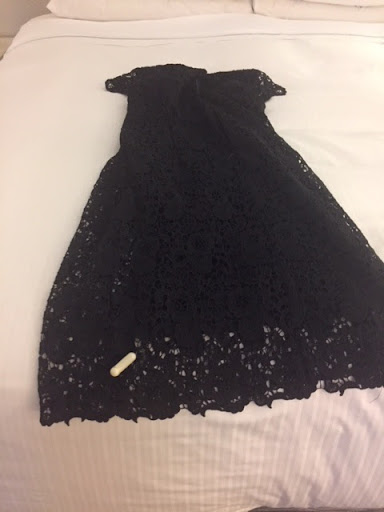 I brought the dress back to Nordstrom's after I returned from my LA trip to receive a credit. When I got to the counter I told the saleswoman my story, showed her the dress, receipt and photo. She was BEYOND rude--she said, so you cut the censor out and you want to return it? I explained myself again and she said she had to speak to her manager. Fine. Then a second saleswoman came up to me while we were waiting for the store manager. I had to tell the whole story over again because the first woman just gave the second woman a stupefied look and said nothing. The second woman interrogated me--asked if I had purchased the dress here (location was on the receipt), where the hole was, etc. I felt criminalized and villainized. Finally, the manager comes up and asks what's going on. Neither of the first two women said anything so I repeated my story for the third (actually fourth) time. Without hesitation the manager said to go ahead and give me a credit... I can't even describe how the first two women looked at me. Maybe utter disgust? When I asked the first woman if she needed to see my credit card she said no, it looks like you purchased the dress with a gift card. I said no, as you can see on the receipt, I purchased with my credit card. She replies would you like to put the credit on a gift card? No, I would like it on my credit card. Well then I'm going to need to see your card. After that neither woman said one word and I walked away from the transaction trembling.