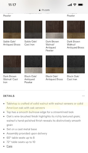 I am super annoyed with Restoration Hardware. After spending $3000 on a “solid wood” table, the top vener gummed up with regular wear and tear. I am so sad I didn’t take a picture of that! It looked terrible, so we had to cover it with a table cloth. They would not replace it even though we notified them within 30 days of purchasing. They said it was not defective, but our fault for damaging the table. The problem was that the table continued to be damaged by just placing plates and utensils on it. They also recommended a repair kit, which we purchased, but was completely useless. So we decided to refinish it, Since we thought it was solid wood. We should have been able to stand down a layer or two and get to something that we could stain. Instead we spent hours of standing through multiple veneers to get through to the very last layer, which is pieces of plywood put together and not solid wood. I am super disappointed in Restoration Hardware because they are not an inexpensive brand and I thought they were higher quality, but clearly they are not. So frustrating.