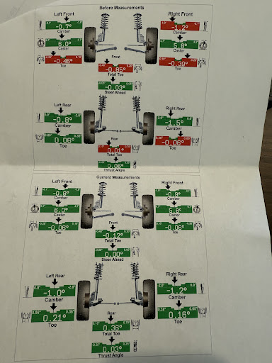 Read moreI went here for a four wheel alignment due to the good reviews. However, I was surprised to find that after their first alignment attempt, my steering wheel was crooked. No big deal, it happens, so I went back for a readjustment. No apology, no acknowledgement, or explanation from the owner, I had to ask to be "squeezed in" to their schedule to get my car serviced again. This time, the steering wheel was straight, but my car still went right.