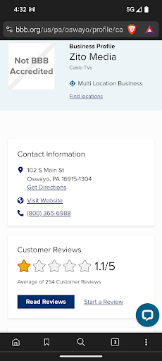 Read moreA complete fiasco of a company , They purchased USA Cable and it’s been a train wreck ever since . They don’t offer cable in my area so I’m on a transmitter / satellite dish receiver for what I was told would be 30 mbps for $39.99 Sounds like a deal , my AAE is a remote town in the So-Cal desert we don’t have any major internet or cable services .Well that’s when the nightmare started , we never did get speeds beyond the mid teens , zitos excuse was that they needed to set up more towers and my dish was too far from the uplink tower! And that’s is how my fault ? Never received a price adjustment just promises of a new tower in two months that’s been over a year now!!along the way they sporadically cancel my 39.99 rate and increase it to 55 saying that the promotion is over ! Jump ahead to now where I have been without adequate service for 4 months , I have had my rate increased several times then adjusted and raised again ! Repeatedly been with below 2 megabits speeds for 2 months And currently without internet for 3 weeks with 4 missed service calls and multiple we will call you back promises that never happen. All this with a recent rate increase even after it was adjusted again for the 7th time . I will be looking to file a class action law suit currently I’m going diode to door asking zito customers about there negative encounters with this company , I’ve also filed a formal complaint for the city that I live in to investigate zito media for consumer fraud and misrepresentation...