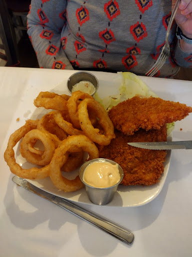 She had the "Fried Tenderloin with Onion Rings"... Again she could only eat half! Breading on the Tenderloin was perfect... The coating on the Onion Rings was thin and crispy!