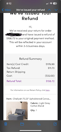 Awful experience. I purchased 4 items. The first one was a sofa bed. After receiving it, we found out it is NOT a sofa bed. We reported it and they gave us a discount on the item and so we were ok with it. Then, we got another chair and then found out they charged us extra $50 for a delivery fee AFTER the delivery without telling us. We found it on our credit card account!!! We called and asked why because it was a free delivery order. They said because they delivery agent charged them extra for unloading it from the truck (NOTHING TO DO with our residence). We told them it was never disclosed and agreed to by us at the time of the purchase since we chose the free delivery option. We asked for a refund since it was wrongly charged and they declined to give it. In addition, they canceled the last item in the order without giving us a refund. Never buy from this...