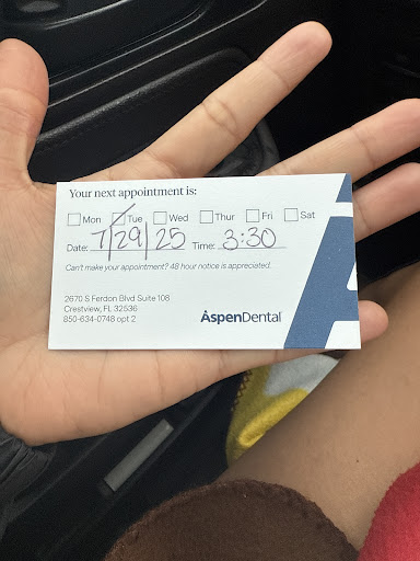 Read moreThe reviewer who said this "dentist office" is more like a car dealership is right. When I made an appointment for the initial consultation, I was told that the initial consultation would be free. She explained that the consultation was to work out a dental plan with the dentist and get x-rays. My previous dentists (one which I used all throughout childhood, and one which I used for the previous four years) did this as well as the initial cleaning in one appointment, so I was a little confused as to why I needed a special appointment for this. I specifically asked if I would be able to receive a basic cleaning if that was all that I wanted, and was told that I would. At the consultation, they said it would be $40, which isn't what I was told when I made the appointment... I informed them of what I was told over the phone, and they did give me the intitial visit for free, but I'm confused as to why they tried to make me pay something after they told me it would be free? While getting my x-rays, the technician talked to me about the process at Aspen Dental, how the doctors would look at x-rays, and we could discuss my treatment plan. I was a little wary of this talk of a "treatment plan" because I've never ran into this at any other dentist. especially when I have been clear that I only want a regular cleaning. At this point, -again- I specifically asked about getting a regular cleaning, and I specifically asked the technician if I would be able to decline extra services and get a regular teeth cleaning. She said I would still be able to get a regular cleaning. The rest of the visit is nice and normal. The hygienist and dentist were both pleasant. At the end, I sat down with someone else to make my appointment and discuss pricing. This is where I ran into the issue. I basically received a classic sales pitch, "Here is a description of the product, -so how would you like to pay for this today-, here is a description of our payment options." I explained I wasn't interested in the product they were trying to sell me, that I already knew what product I was interested in. I was told that no matter what, I couldn't get a regular cleaning and that I had to follow their recommended plan. Well, this is 100% different than what I was told up to this point. I was told several times, by several people, that I could decline the recommended services and still receive a regular cleaning. I made an appointment with this dentist office, that is an hour away, based on this knowledge alone and because they accept my insurance. So come to find out, I wasted four hours of my day (two hours driving and two hours sitting in an office) for no reason. If I had known this, I could have saved my time, as well as theirs, and went to a dentist that was closer and just paid out of pocket for a basic cleaning. This is ridiculous, and it is clear based on my interaction with multiple people that Aspen Dental does not have clear or standard policies. Also, what kind of health provider refuses to care for patients simply because they do not want a more expensive procedure? Dentists recommend that everyone get their teeth cleaned every six month, so what kind of dentist refuses to clean a patient's teeth?...
