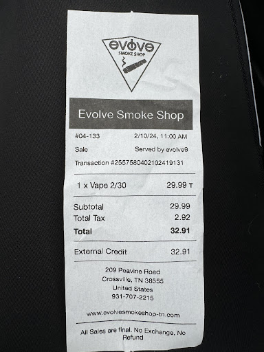 I moved to Pikeville last year, and a as looking for a local vape store. I do order some stuff online, but I think it is important to support your local businesses. I have been to just about every shop in the Crossville area, and I find I like Evolve the best. They are competitively priced and I always get great service. Brandon is an exceptional representation of what I expect from a customer service oriented bussiness. This is my new "go to" for vape supplies. I have spent a little time talking to the representatives, and they are always interested in customer feedback, to ensure they are stalking the products we want. They also carry CBD, Delta-8 and...