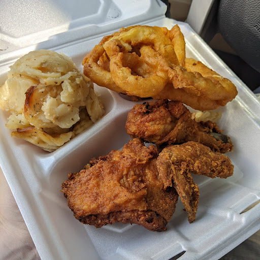 I've heard a bit about the fried chicken here and since I was driving through, we stopped for lunch. I'll explain my 4-star a bit. For a gas station without much around, it was a good meal at a reasonable price. I went with the 3-piece dinner, which gets you a thigh, wing, drumstick, and two sides. There were a few options and I went with scalloped potatoes and onion rings... Oh, and a dinner roll. For $9.99 it felt pretty reasonable. Chicken and sides were warm. Chicken was crispy, good seasoning, but not complex flavor. Onion rings are real onion rings (not minced) and batter fried. Scalloped potatoes were better than expected and they were a decent portion.