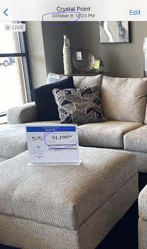 Read moreWARNING: They will increase the prices multiple times in a week for same item. The couch I intended to purchase increased in only 6 days from $1,199 on 10/9/20 to $1,278 on 10/11/20 to $1,399 on 10/13/20 Pictures included in review show the change in prices