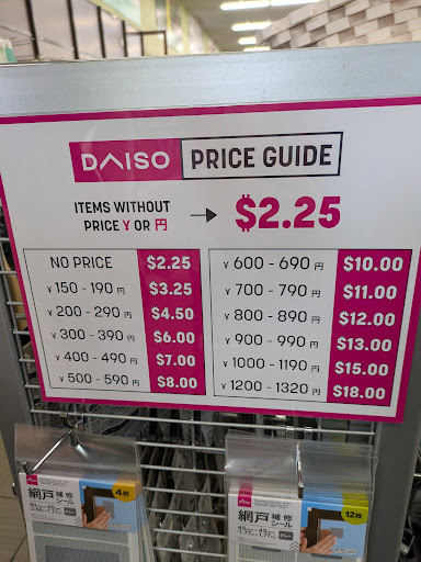 Read moreDisclaimer: I am obsessed with Daiso. Cute Japanese products at ridiculously reasonable prices? As a shopoholic that can't resist a good deal, I am in heaven whenever walk through the doors. They have a vast range of items including but not limited to stationery, cleaning supplies, knick-knacks, art materials,and even cooking accessories. If you want a random item, most likely you will find some form of it here. I've bought everything from hot-pot utensils to a rainbow outfit for one of my dogs. Though it's a dollar store, you will probably walk out spending much more since all the small items tend to add up.