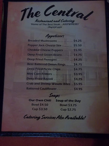 Read moreAfter hearing such good things about The Central, the husband and I decided to go there for our anniversary dinner. We were only ones in dining room. Waitress was polite but seemed more focuses on cleaning up for the night. My delmonico steak was barely 1/2" thick, I ordered medium rare. Red,warm center, it came out pink hot center. I asked if they used real butter for baked potatoes, waitress replied yes, baked potato came with 1/8 cup margarine on top, I was unable to eat it. Waitress never asked how everything was, just do you need anything, and then came back once with the bill. ...