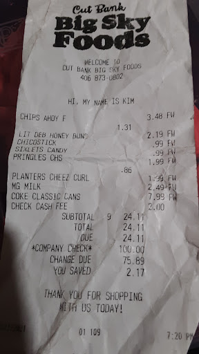 The customer service, prices, food selection, I experienced, were above and beyond the store next door, I was happy to find. Albertsons is fine, but they seemingly have a corner on the market in smaller towns, leaving people with no other choice, often providing poor produce, meat selections, exorbitant prices overall, lousy customer service (because they can, where else are you going to shop if there's no other store?), and frequently not top quality foods. Big Sky Foods was a welcome surprise, they were out of a sale item on the floor, but offered to cut a roast to my specified size AND hold it for me until I could pick it up. The gentleman who helped me at the time, was a manager, very nice man, longer hair, neatly pulled back in a braid or ponytail, with excellent manners and customer service skills. He offered to help me out to my car with my groceries even, again, much to my surprise. Very lovely store and employees, very clean and a wide selection of foods, meats and produce the other store doesn't carry. Give them a try, you won't be disappointed. Kudos to you, Cut Bank...