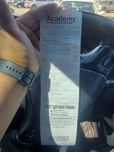 Read moreSo I went in to buy my husband a gun for his birthday. I’ve bought lots of guns from the academy from Gulfport several times with perfect service. This time was quite different at this location. There was an older gentleman behind the counter that assisted my daughter and I. He was very rude to us. Frankly, if I wasn’t on a time crunch I wouldn’t have purchased the gun it was that bad. My fourteen year old daughter even commented on how rude he was. Then we witnessed this same man help a gentleman behind us who literally called the guy a liar over some kind of regulation. My mouth fell open. Completely unprofessional. Well... long story short there was a delay on my background check which is no problem. I went a head and told my husband about the gun I am going to purchase but forgot the model number. We called and talked to the manager over the gun department who was also very rude and unprofessional. We just wanted to know what the model was and they refused. Apparently rudeness is modeled from the top. I will never buy another gun from them. On a plus note, there was a younger guy that worked there with a squinty eye that was very kind. So if you have to buy a gun from them look for him. Sorry I didn’t...