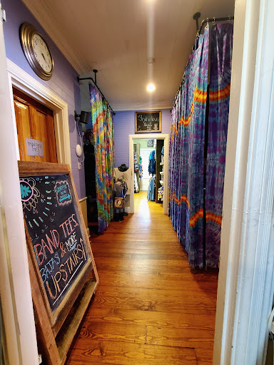 There is one room dedicated to all Grateful Dead merchandise. They have more gypsy/hippie skirts than I've ever seen in one location, plus other festival-wear type clothing. They sell lots of cute windchimes and prayer flags and other decorative items as well. One room upstairs is filled with band t-shirts and memorabilia. There are plenty of items for kids to choose from as well. Our daughter picked out several items for herself and also enjoyed making a drawing at the little art desk they have set up downstairs.