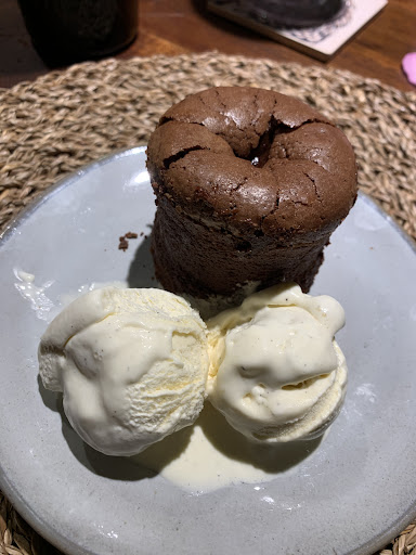 Food: Appetizer course - Calamari Fritti. The Calamari was tender and not chewy at all, perfectly crisp, and the vodka sauce on the side was a perfect citrusy and tomatoey compliment to the dish. Salad - Apple Mesclun salad. Probably one of the best salads I've ever eaten in my life. The gorgonzola, shaved apples, and that lemon honey vinaigrette combination was so flavorful and a perfect light dish in between the appetizer and main course. I will say the highlight of this salad was actually the spiced walnuts which gave a unique texture and flavor to the salad - didn't surprise me at all to learn that the "spice" used on these walnuts was actually made by the Chef himself! Once again putting his own special twist on an already amazing dish. Main Courses - I wanted to try something different, so by my request, Chef Chip prepared an exquisite lobster tail on top of a delectable risotto with a steak medallion. I opted for his tried and true herb-crusted rack of lamb with the red wine jus, and risotto cake. For my friends course, she LOVED it. The lobster tail was cooked perfectly, the risotto underneath the tail had bits of lobster meat from the rest of the lobster in it and was so tasty! Her steak medallion was done just how she likes it and the veggies were a nice compliment to such a rich dish. My herb-crusted rack of lamb was a whole experience. Before cooking it, the Chef let me taste his homemade pesto that would encrust the lamb and by itself the pesto was phenomenal! When I finally got to taste it on the lamb, I was just in heaven. The lamb was perfectly cooked to what I like (medium-rare) and was so juicy. The risotto cake was something I’ve never had before, and as a fan of fried things, this was just stunning. I mean it’s fried on the outside and creamy on the inside, what’s not to like? The red wine jus that accompanied this dish just took it to the next level - I seriously would bathe in that jus because it was just so damn good! Dessert - Finally to end the night, we went with the Chef's Molten Chocolate Soufflé which was an amazing end. The soufflé was cooked to perfection, molten center, fluffy outer, and the vanilla ice cream made the dish that much more delicious.