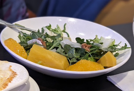 The Roasted Beet Salad, with beets, orange segments, arugula, candied walnuts, fennel slaw, greens, and a balsamic glaze, was fine; nevertheless, with all those ingredients, it didn’t pack the flavor as one would imagine.