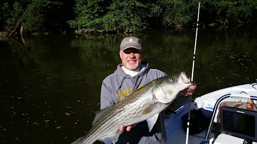 I booked a 4-hr fishing charter for 3 older teen boys during Spring Break on Carters Lake. They were picked up promptly at 7:15am at Woodring Branch boat ramp by Captain Dan. After 4 hours, they didn't see much action so the Captain decided to try another spot & extended the trip out (which was super awesome of him & very much appreciated). In the last 15 minutes of the trip one of the boys hooked a new boat record, a 22lb 35" striper! Very exciting for the boys & now they're plotting on...