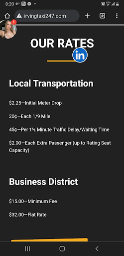 Very nice to talk to. An easy, safe, and fast trip after dropping my car off at the Dallas VPC. He came all the way to Grand Prairie to take me back to Irving. I would highly recommend his services and would use Irving Taxi again if I was in the area.