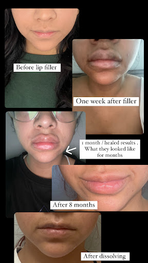 It took 6 months to start seeing any improvement in the lumps, and after 8 months, my lips were still uneven and lumpy. I ended up DMing them recently to let them know the problem was still active, and at first, they replied as if they were going to help resolve the issue, but they ended up ignoring me. That’s when I made the decision to not go back and find a new medspa.