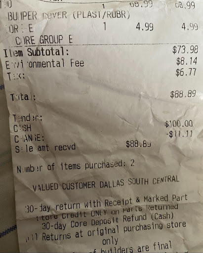 Read moreRead moreDon’t go to Dallas south central. The manager Stephanie and Tyrone know nothing about rear end and they to justify charging 120$ more than Fort Worth. To listen to her try to explain that it was horrible feeling when you know some one just doesn’t care at all and because they have no knowledge of what the part even is. I showed her pictures and the receipt from both locations. Absolute scam with the warranty. They charged me x2 what Fort Worth charged for the warranty. And double for core. Same rear end same!!! Dallas central is a scam and will charge you the highest price if you’re not from around there and especially if your from Fort Worth: don’t even mention you go there Stephanie just talked trashed about fort Worth and used that as a focal point why she wouldn’t help me…. Horrible service at Dallas...