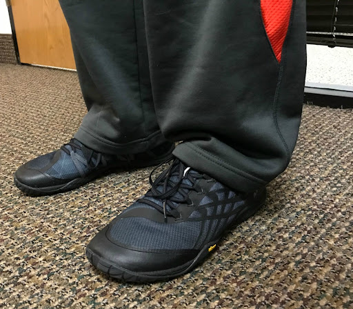Since the Trail Glove is completely flat, flexible, and has an adequate amount of space throughout the toe box, I felt like it would be a good fit for a client who planned on walking and standing at his desk.