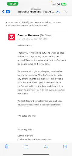 Read moreDO NOT DO IT! this company is absolutely unorganized! we booked the 3pm tour for saturday 4/26. in the afternoon we got a text message saying the tour was moved to 4pm (note that they didnt ask if that time was still okay or if we wanted a refund just told us the new time). we got there at 3:45 per the instructions and a lady working it scanned in our tickets. We kept being told the bus is coming several times (not just once but multiple!) and it was just a few minutes out. we proceeded to wait outside in the heat for over an hr! there is no indoor cover/ ac while you are waiting and no bathrooms out there so be prepared. A bus did end up coming BUT of course it was not our bus. it was the bus for the tour scheduled AFTER us!!!! they let that bus board before us which made no sense at all! at 5pm we had to leave as a bus still had not showed up and we had other plans. In reading other reviews it looks like our bus didnât show up until 6pm. we were told to email for a refund. i am going to give this company the benefit of the doubt as they did issue the refund, but only after I argued the point. I would have thought they would issue the refund with no problems given the situation, but just have your arguments/proof ready. They initially had said since our tickets were scanned it showed we attended the event so no refund. So if you do go DO NOT let them scan your tickets until you are actually boarding the bus. although im sure customer service would then just try to say you didnt show up so you just cant win there. I just wish they would have just cancelled our reservation and offered the refund before we wasted our Saturday. There was absolutely no communication as to what was going on. It is a very cute concept and i wish we were able to experience it, but dont waste your money until this company gets some proper management and direction and updates their refund policy to include no refunds or cancellations unless your tour bus doesnât show up within an hr of your...