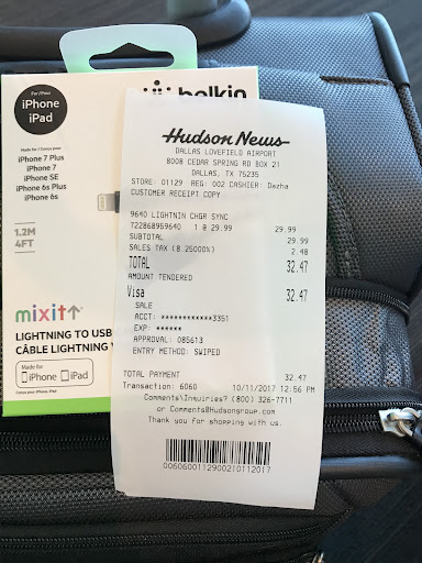 I am an avid audiophile, DIY'er, and electronics enthusiast as well as repair audio electronics professionally. I am not the average reviewer. I normally don't pay attention to consumer electronics stores at all, much less these places in airports that look like over-priced flashy non-performing tourist bait. Layover delayed at Dallas Love Field, I went ahead and passed some time perusing Tech On The Go. I own several pairs of supposedly "higher quality" budget over the ear headphones, as I would never spend hundreds on big brand names because I don't normally listen critically through headphones. I brought my current pair of cheap earbuds to use while on my trip to listen to a movie on the plane, etc. In Tech On The Go I thought to myself "Maybe I should treat myself to a pair of noise cancelling headphones". With run of the mill earbuds, the airplane noise usually is so loud you have to turn your phone/tablet/laptop volume up all the way and it's still annoying and hard to hear. I eyeballed a few models of headphones and Googled pricing and to my surprise they were in line with online pricing. I asked the girl behind the counter if they had any demo units as I couldn't see buying something like that at an airport shop assuming I wouldn't be able to conveniently return if I didn't like it or if there was an issue. She pleasantly explained to me that they are a Hudson News store and I could return anywhere there is a Hudson News including my home town airport. I figured that and a non-inflated price meant no excuse to not buy something if I liked it. I picked up a pair of "Marley Positive Vibration 2 Wireless" over the ear headphones because the price was nice and there were good Google reviews. The reviews on the product were correct and I will leave my description of that to my Amazon review on it. As for Tech On The Go....5 stars from someone who would never have expected to be so...