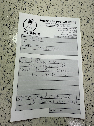 I added the pictures of the carpet that they included on the report, so you can judge yourself, as well as the "invoice" for the carpet cleaning.