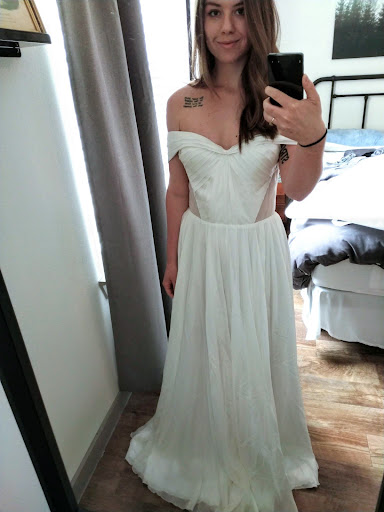 Read moreDebra was referred to me by someone I used to work with. It had come up that I was going to be going wedding dress shopping and she told me that White Gown Workroom had a great selection of unique dresses and to make sure to check them out. I was able to book an early appointment with Debra before others that I had lined up the day we were going (my Mum and Maid of Honor were flying in from out of town so we had back to back appointments booked). Debra asked what type of gown I thought I was looking for and what my budget was and what size I typically wore in street clothes. She gave us a minute to look around the shop and pull out some options and also pointed out some she'd recommend. She encouraged my Mum, MOH and MIL look around as we were getting into the first dress. Everything was very relaxed, didn't feel rushed at all. I tried on a gorgeous, completely beaded strapless gown that would have been WAY over my budget anywhere else, it was stunning and fit like a glove. She said it was a designer sample that they decided not to mass produce and I was the first person to try it on. The only thing holding me back was that I really wanted a gown with sleeves, she suggested a lace bolero jacket and as soon as I put that on I knew I had found my dress! Luckily the only alterations I needed were hemming and a bustle. Debra stored my dress there and I started coming in for alterations about 2-3 months before the wedding for fittings. The alterations went very smoothly and I was always shocked with how quickly she pinned! She has a beautifully curated collection of gowns that is always changing, she was always professional and great at making you feel comfortable and at ease. If you are looking for a wedding gown - go pay...