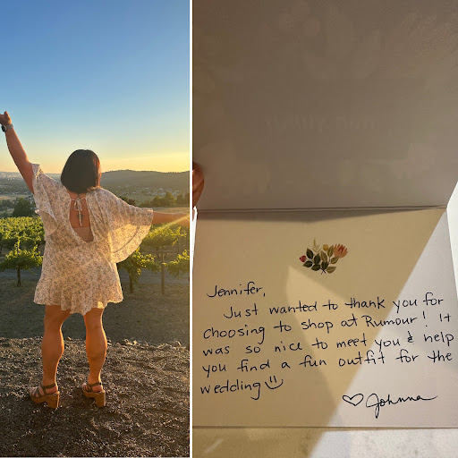 Ā Ā Ā Read moreAbsolutely wonderful experience. I bought this romper a few weeks ago. She was super helpful in helping me pic this outfit and other accessories to go with it. Then to send a hand written thank you card absolutely goes above and beyond customer service. She really cares about her customers and that feels really nice! Plus, they have SO many cute clothes and accessories and always have new styles and items! Iāll...