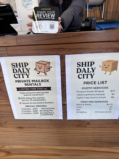 This place is more than just shipping — they also do passport photos, visa photos, UHaul rentals, private mailbox rentals (PMB) with a real street address, and even printing, faxing, scanning, and document shredding. Super convenient location right by the Daly City BART with easy access for drop-offs. Highly recommend this locally owned small business for anyone looking for a one-stop shipping and mailing center...