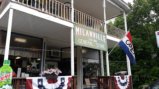 A wonderful old-fashioned General Store in Milanville, Pa, just half a mile from the Delaware RIver. Where eagles soar and bears roam. Here you can gas up your car, buy ice cream, and rent a DVD. If hungry, you can get a big Chicken Parmesean hero sandwich or chili to go. You can buy the New York TImes or the Wall Street Journal or a local newspaper. You can mail a letter or a package. (the Post Office is in the back of the General Store.) You can pick up some fire starters, or a parcel of firewood, or a tarp to cover the firewood you've already got. They have flashlights, and milk, and eggs, and Rocky makes the best "Garbage" pizza you've ever had. (i.e. pepperoni plus sausage plus peppers plus olives plus onions. Mmmm!) Love this place.