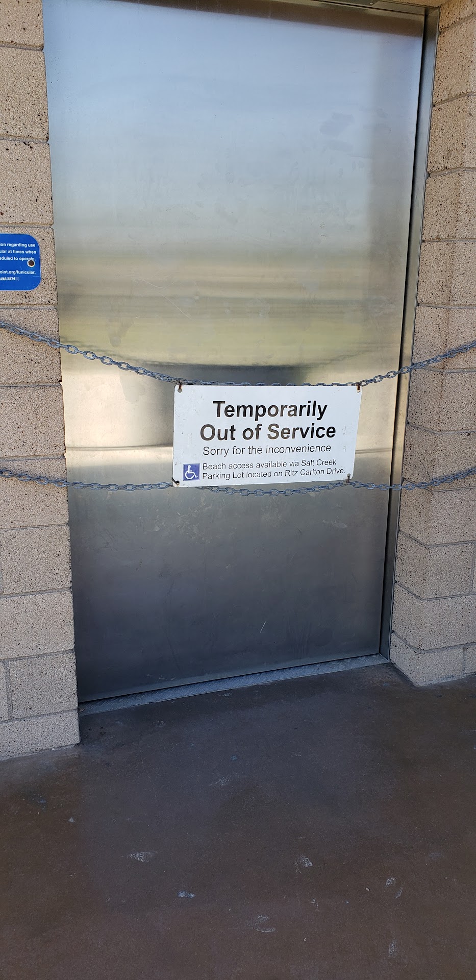 Strand Beach Elevator is an inclined elevator in Dana Point, California that transports people between a beach area and a hilltop, making the beach accessible. A developer agreed to construct this amenity for the city as part of an overall deal for a large real estate development.