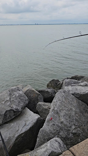 What a nice clean handicap accessible fishing pier. Wide concrete walkway from parking lot to the end of the pier with large rocks on both sides. Great for catfishing and sheephead, with a occasional bass, crappie and even a walleye. The pier host a concrete wheelchair accessible fishing platform out over the rocks to get closer to the water with a safety rail. This pier is L shaped and is used for a break wall for the boat launch ramps. While fishing it's fun to watch the boats come and go, and it has a nice view across the bay at The City of Sandusky. Restrooms are provided on shore at the pier ...