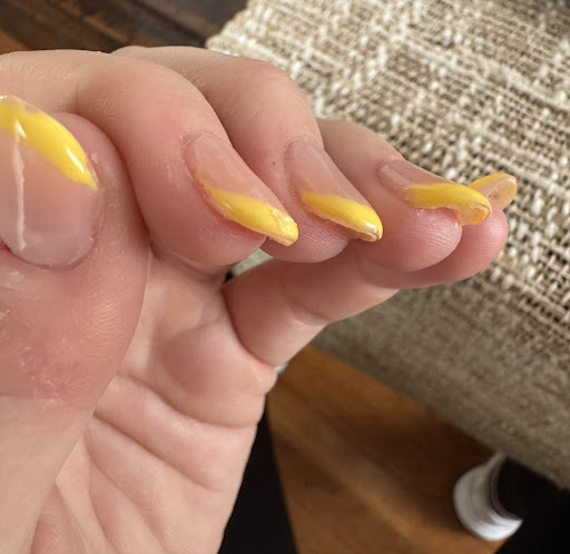 Had my appt for 12:45 for a fresh full acrylic set + pedicure, both with gel and was checked in. Left notes in my appt that I would like a nail tech who specializes in designs, showed my inspo and sat down to wait for my nail tech, Tina.