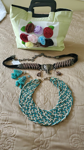 I spent a lovely hour browsing and trying things on. So many wonderful items to choose from! The saleswoman showed me some of the items of the Ms. Thorpe estate, and told me some about her life. I am honored to have bought one of Ms. Thorpeās beautiful scarfs, and an Asian bracelet she got on one of her travels.