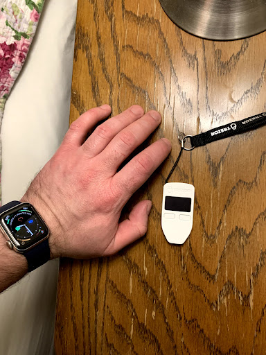 Read moreArrived much sooner than expected—in about 2 days. I think I ordered it on Tuesday and got it Thursday (in Wisconsin). The Crypto Merchant is listed as an authorized reseller on Trezor's site and had good reviews, so I got it from them because the price was great. I got a white Trezor One (in May 2020)—and I really like it; it's design has personality and reminds me of the cute female robot from WALL-E; it works well with Exodus on a Mac, but you have to have the device signed in to Trezor's site while Exodus is open, so until I figured that out, I couldn't get it to work. But then it handled sending and receiving several different cryptos without any issues. Whatever more obscure currencies the Trezor One doesn't have natively, Exodus can handle. I also really like the passcode design on this. It jumbles a different 9 digit Sudoku-like number pad each time on the device that you then guide your cursor to on your computer to enter your passcode. I prefer this to a touchscreen on the device because fingerprints and IR could pick up your entries, but maybe the numbers jumble on the Trezor Model T also; idk. I would buy from them again, and I would buy another one of these as a backup. Also, they reach out to you to offer any help if you need it and are friendly. Packaging was tamper resistant and held up to Trezor's standards on their website with all the hologram stickers etc. The Apple Watch 5 in the photo is the...