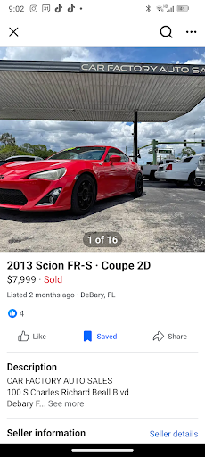 I came in to buy a 2013 Scion FRS with only 70k miles and at first I was confused why such a gem would be listed so low till I saw it. For the record I came with my mechanic father. The exterior is beautiful but there were some things done to the car that would require some TLC, namely the interior needed some slight cleaning, modifications were done on the car such as a muffler delete, spoiler bolt on, lowered suspension, the brake lights didn't work, engine oil needed changing, and someone cut the wiring??Meaning no horn or panic button but what I was mainly concerned about was a scratching sound when driving and a knocking sound from the engine which I feared was rod knock.