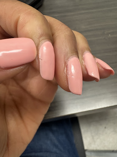 I decided to try a new place. My natural nails are healthy and long. I only get gel polish. The tech made at the polish very lumpy and my nails were shaped awful. I asked her to redo them and she said it was my own nails that were shaped like that. I returned the next day because my nails started breaking in the middle. First, my index finger. They fixed it with SNS powder. Over the next few days, my other nails started breaking in the middle. One by one. I kept having to go back and get the nails fixed. They used gel polish when I went back, but other nails started breaking. The pictures below are where they are now. When I returned the first time, I asked them to just take off the polish and Iāll go to my regular salon, but they offered to fix it at no charge. Now, my nails are in pain from breaking across the nail bed and Iām furious that this is happening to my beautiful natural nails! š«š”š¤¦š¾āāļøTheir base coat for gel polish must be old, or theyāre using something else because the sides of my nails have very hard pieces, almost like itās acrylic. Something must be unsanitary. Iām never coming back here again. I want this stuff off of...