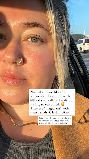 Read moreI've now gone to The Skyn Distillery several times and have seen both Melissa and Emily, and they're both PHENOMENAL!! I'm 30 and have the best skin I've ever had in my life because of them! I have rosacea and dry, very sensitive skin--so I had actually never gotten a facial before seeing them because I was nervous about how easily and how often I have intense reactions. They took my concerns seriously, they adjust the facial depending on how my flareups are, and still when they use new products on me, they mentions it & check in to be sure I'm comfortable and that I'm not feeling a reaction (which I appreciate so much!!). When I first saw them as well, they recommended products to me (local, ethical, clean!) and taught me the best at home skin care routine for my skin type....between that & seeing them for facials every now and then, my skin freaking glowwwws WHICH I NEVER THOUGHT WAS POSSIBLE. I also have gotten the lash lift/tint several times which I'm superrrr obsessed with (I always wanted lash extensions but never did bc the upkeep is too much haha! So if that's you too, I'm telling you, the lash lift/tint is where it's at!!!). All that to say...Emily and Melissa are the real deal. They're incredibly knowledgeable & passionate, experts at what they do and they truly care about the clients that come through...