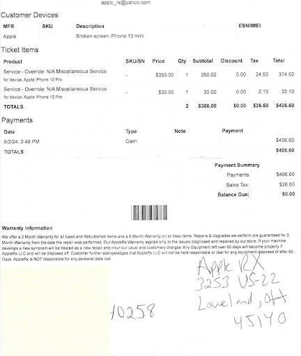 My iPhone was in my pocket at the time of my fall, and the screen was destroyed but the phone was still functional, although many of the items were unreadable. Due to the severity of my injuries, I have a head CT scan to check for a brain bleed they as luck would have it, they also found a lump in my lung, which might prove to be cancerous. Having a functional phone was now a matter of life and death, as I had to make follow up appointments and needed to schedule a biopsy for my lung mass. This all happened last Wednesday the 14th. I considered simply buying a new phone (I have an older trusty iPhone model 6, which is perfect size wise for me and all the functionality I need), but instead opted to order a new screen and install it myself. I had previously installed a high-capacity battery with no problems after watching YouTube about 20 times and working carefully, step by step. Well as luck would have it, there was more damage to the interior of the phone (home button and audio cable) and due to my injury, I was having difficulty seeing clearly. Thus, I opted to try and find a local repair shop or just buy a new (used) phone, something I really did not want to do or could afford at this time. I came across Apple RX, and after reading some of the negative reviews was a bit apprehensive but felt worst case scenario, I would just get a new (used) phone if mine was not able to be repaired. I went there this morning about 10:00 AM, and with my broken phone and various parts and screws, organized and separated into ziplocs, I asked if it could be made functional again. The owner looked it over and within a few moments had my new screen installed, along with the replacement cables and a screen saver, all of which he did not charge me for. The phone turned on and works perfectly. The home button being generic does not recognize my fingerprint, but that is a minor inconvenience considering all that was done. Please read all the reviews and come to your own conclusions. Following my repair, I was able to schedule the follow up appointments necessary for my well-being. Mobile phones have become a necessity in these times, and it is reassuring there is someplace I can trust for a fair and high-quality repair. If I could, I would give six stars to help offset some of the negative reviews. Thank you for all your help. I sincerely...
