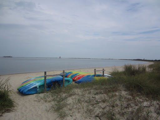 The fishing pier at Cape Henlopen State Park is a nice pier to walk on, fish from or get a view of the surrounding area, see lighthouses in the distance, and watch the ferry or other boats. One may also launch a kayak from beside the pier. There is a snack bar, restrooms, and a nice size parking lot.