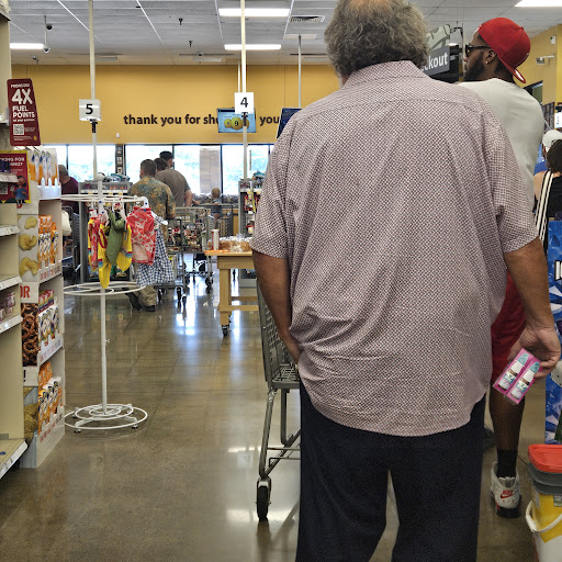 My boyfriend and I were attempting to check out. It was late and this particular Kroger makes it very stressful by stating things like the registers will shut off at exactly 11pm.