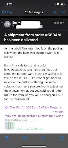 This review is purely from my experience ordering online. I ordered a caracara sweater from Morley at a sale price that seemed great, but when it arrived the buttons were coming off, and thew few that were affixed seemed to have been sewn on with different thread. I received my order 2/5, contacted their customer service on 2/5 and they offered to send me a return label. I had to repeatedly ask for the return label a few times before getting it on 2/11 where I was told I’d have to pay return shipping for a damaged item. When I asked why, I was told “ It is a final sale item that I could have rejected as sale items are final, but since the buttons were loose I'm willing to let you do the return... ” When I received my refund notification 2/14 I was charged not only return shipping but I was charged for initial shipping too. The same customer service rep, Emily, ignored my inquiry email so hoping she sees my question here. I’ve never had such a terrible experience with a boutique, nor have I ever written a negative review. I’m sure this boutique is fine to shop in person, but they quite literally send damaged items to customers listed as “new” and then are appalled when you don’t...